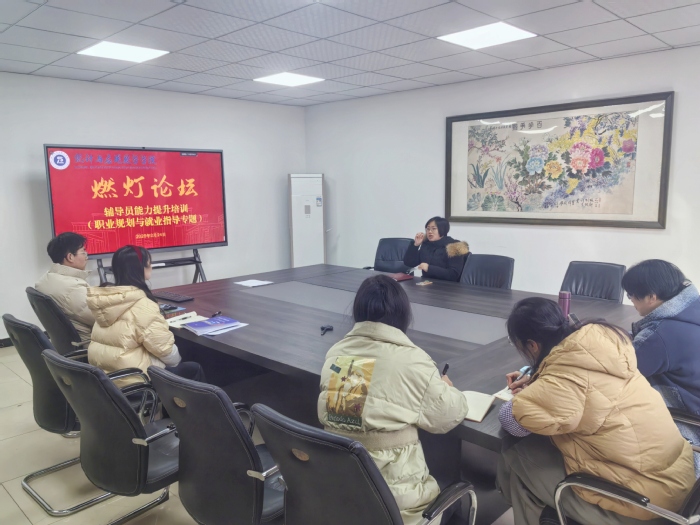 2025年2月24日下午,学院在明理楼二楼会议室举办新学期“燃灯论坛”辅导员能力提升培训第一讲——职业生涯规划和就业指导专题,院党委副书记张楠及全体辅导员参加。论坛由学院就业工作联络人、专职辅导员张子玉,专职辅导员冯阳阳主讲,张楠主持。